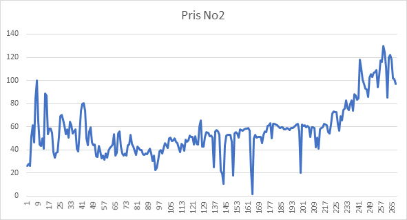 Prisene og forbindelsen til Nederland: Prisene gikk ned under den første perioden kabelen var stengt ned. De fortsatte likevel å variere med store negative utslag etter at kabalen ble satt tilbake i drift, men tendensen ser ut til å være krypende oppover. Deretter vokste prisene til nye rekordhøyder da kabelen var stengt ned i august.