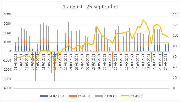 De som har tatt til orde for å stenge av eksporten for å dempe prisene kan ikke ha vært kjent med at forbindelsen til Nederland har vært inaktiv i store deler av 2021, og var også stengt i august samtidig som prisene nådde rekordhøyt nivå. Like etter at forbindelsen til Nederland ble aktiv igjen, ble også forbindelsen til Tyskland stengt av for vedlikehold. Effektuttaket i utenlandsforbindelsene ble mindre, men prisene ble ikke lavere. På tidspunkt med høye priser, ser vi at større import demper prisene noe.