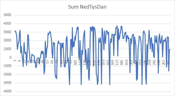 Netto utveksling: Netto utveksling er eksport-import, måned for måned. Denne balansen var negativ i begynnelsen av 2013. Dette gjentar seg i januar 2017, og i vintrene 2018 og 2019 er balansen også negativ. Det betyr at vi i disse periodene er avhengig av å importere strøm fra utlandet. Hadde vi ikke hatt kabler til å eksportere overskuddsstrøm under flom-året i 2020 og de fuktige somrene, hadde vi heller ikke hatt kabler til å importere strøm når vi er i underskudd.