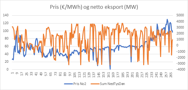 De som har tatt til orde for å stenge av eksporten for å dempe prisene kan ikke ha vært kjent med at forbindelsen til Nederland har vært inaktiv i store deler av 2021, og var også stengt i august samtidig som prisene nådde rekordhøyt nivå. Like etter at forbindelsen til Nederland ble aktiv igjen, ble også forbindelsen til Tyskland stengt av for vedlikehold. Effektuttaket i utenlandsforbindelsene ble mindre, men prisene ble ikke lavere. På tidspunkt med høye priser, ser vi at større import demper prisene noe.