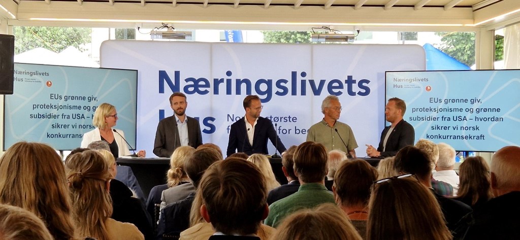 Panel om EUs grønne giv, proteksjonisme og grønne subsidier fra USA. Foto: Marius Jøssevold.