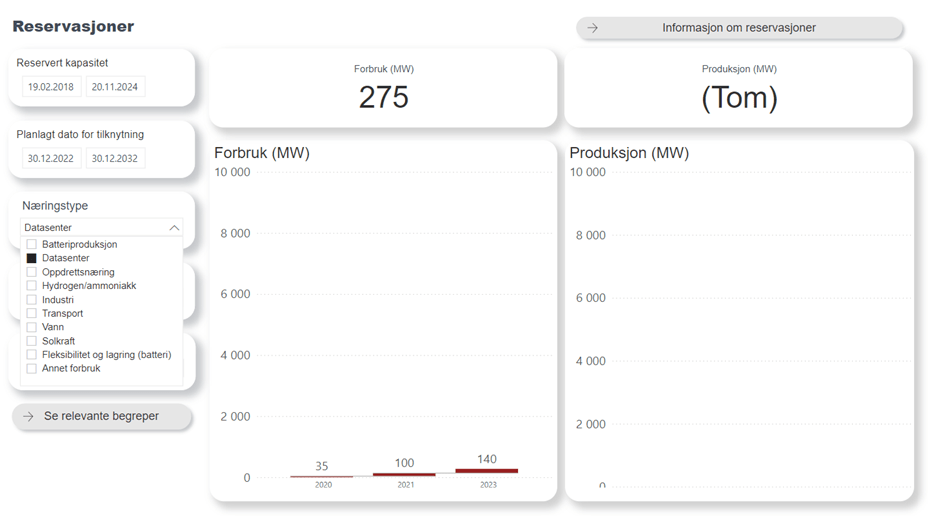 - Reservasjoner, datasentre fra og med 2022: 240 MW