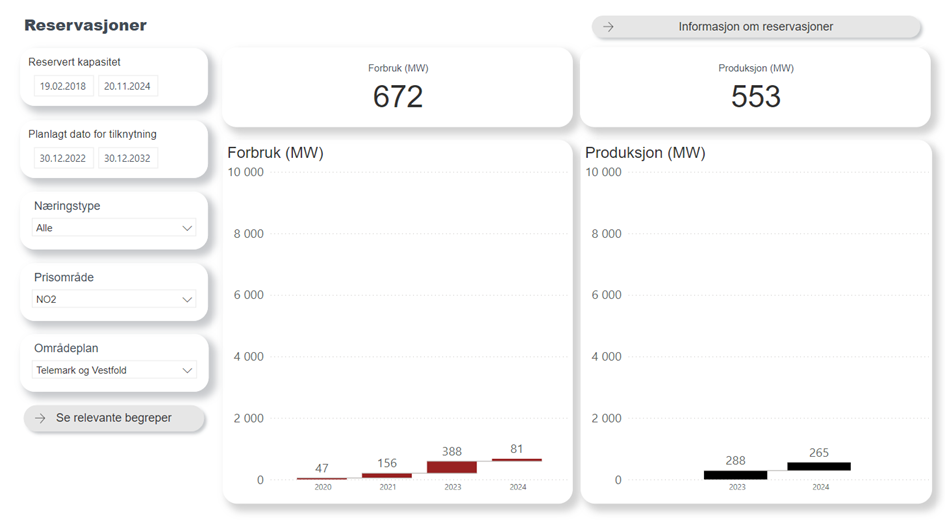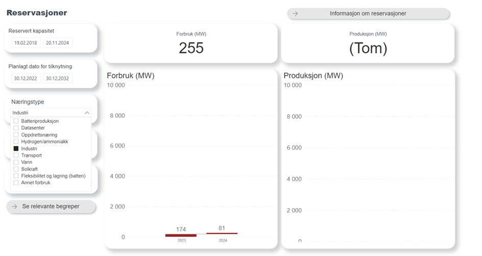 - Reservasjoner, industri fra og med 2022: 114 MW.