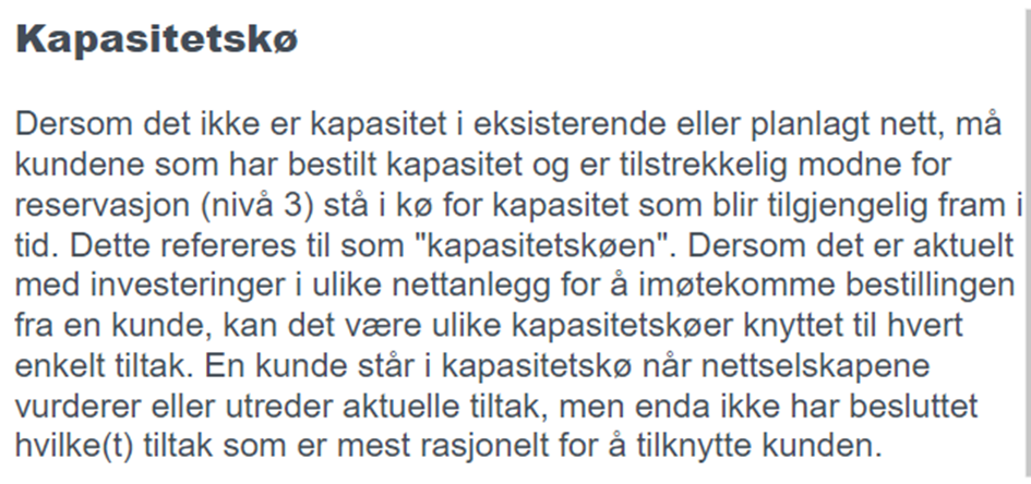 - Kapasitetskø, industri fra etter 2022: 39 MW.